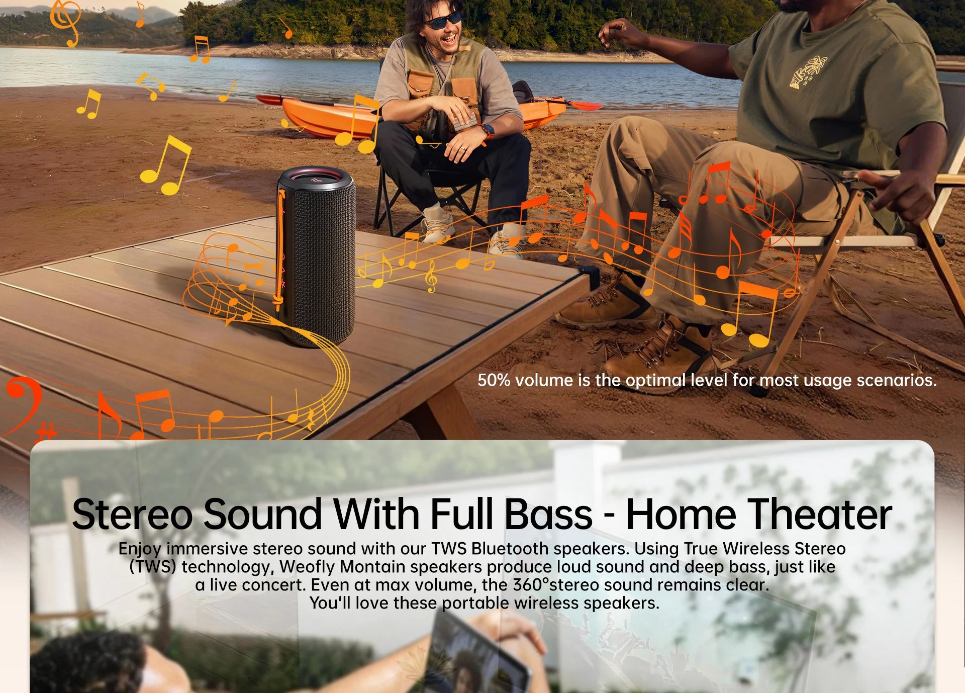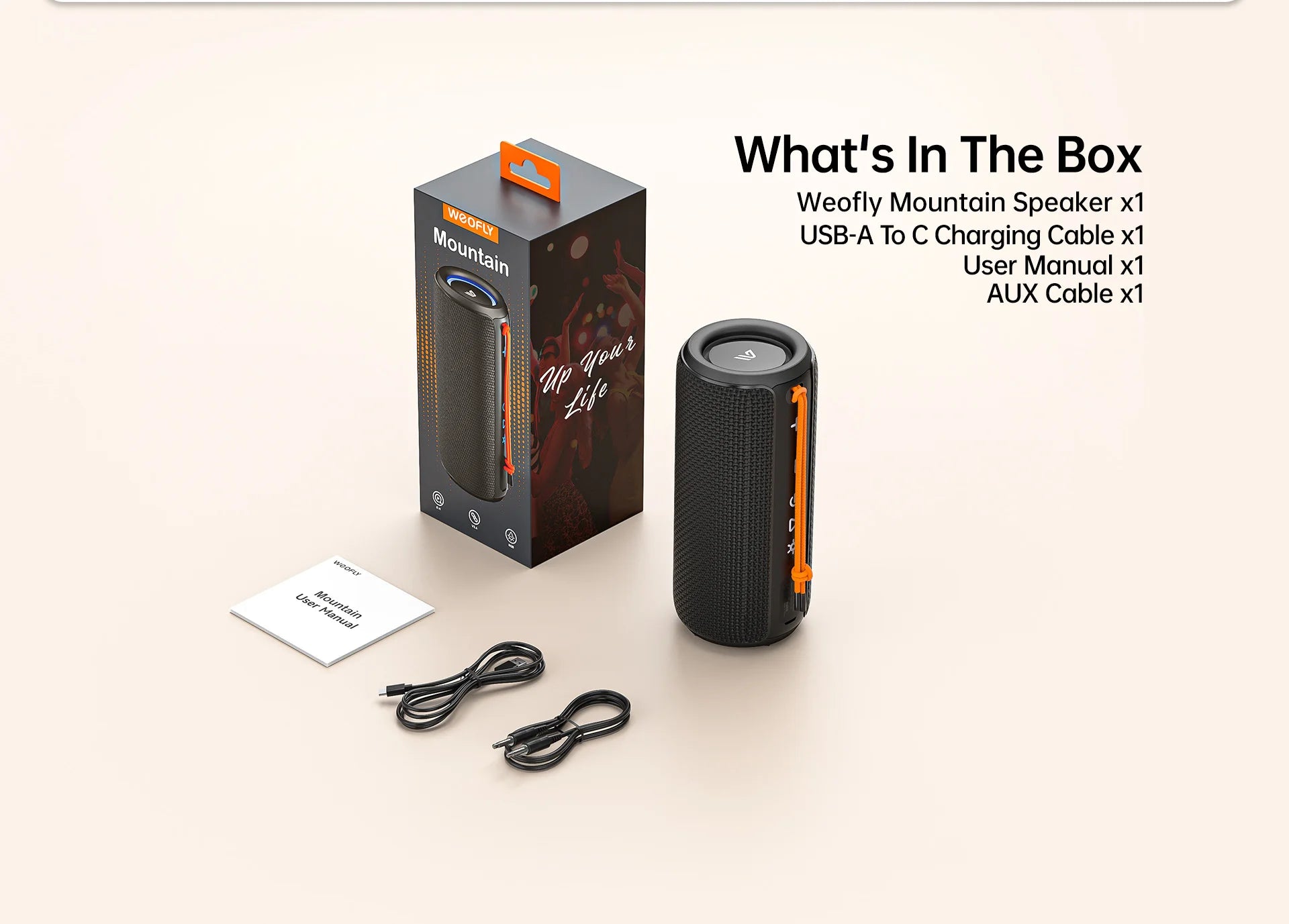 - Bluetooth 5.4 Wide Compatibility: Weofly Mountain speaker uses Bluetooth 5.4 for quick, stable connections and pairs with most Bluetooth devices like phones, TVs, tablets, and laptops.