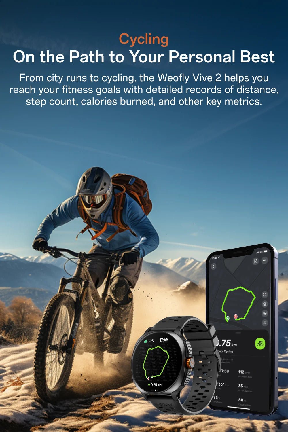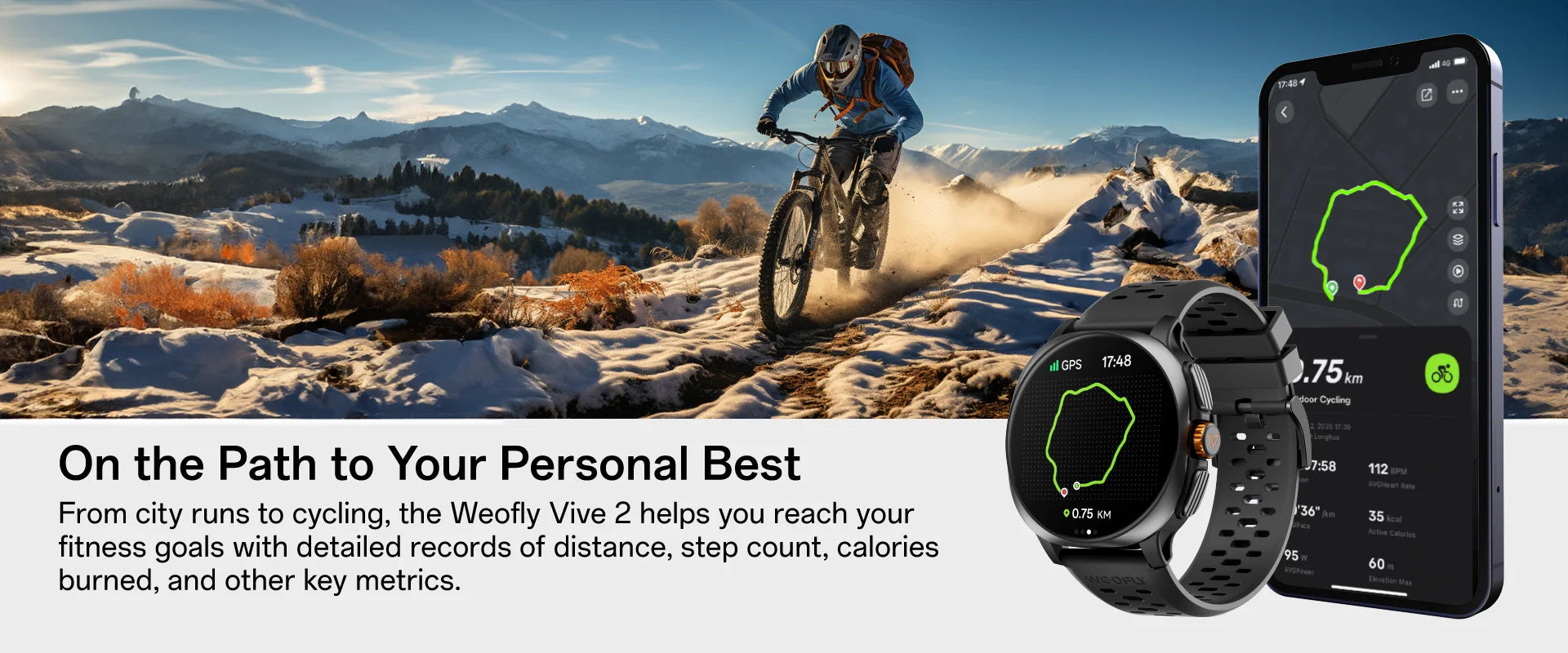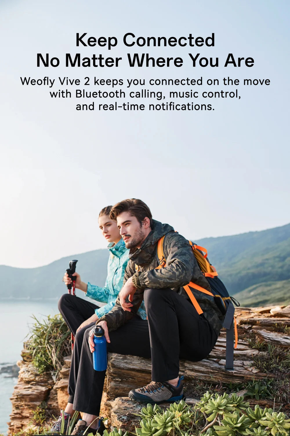 For various activities (hiking, cycling, running included), Weofly Vive 2 is the best stylish sports smartwatch around. To unlock more ways to step up your sports game, check out the Weofly Fitpro App.