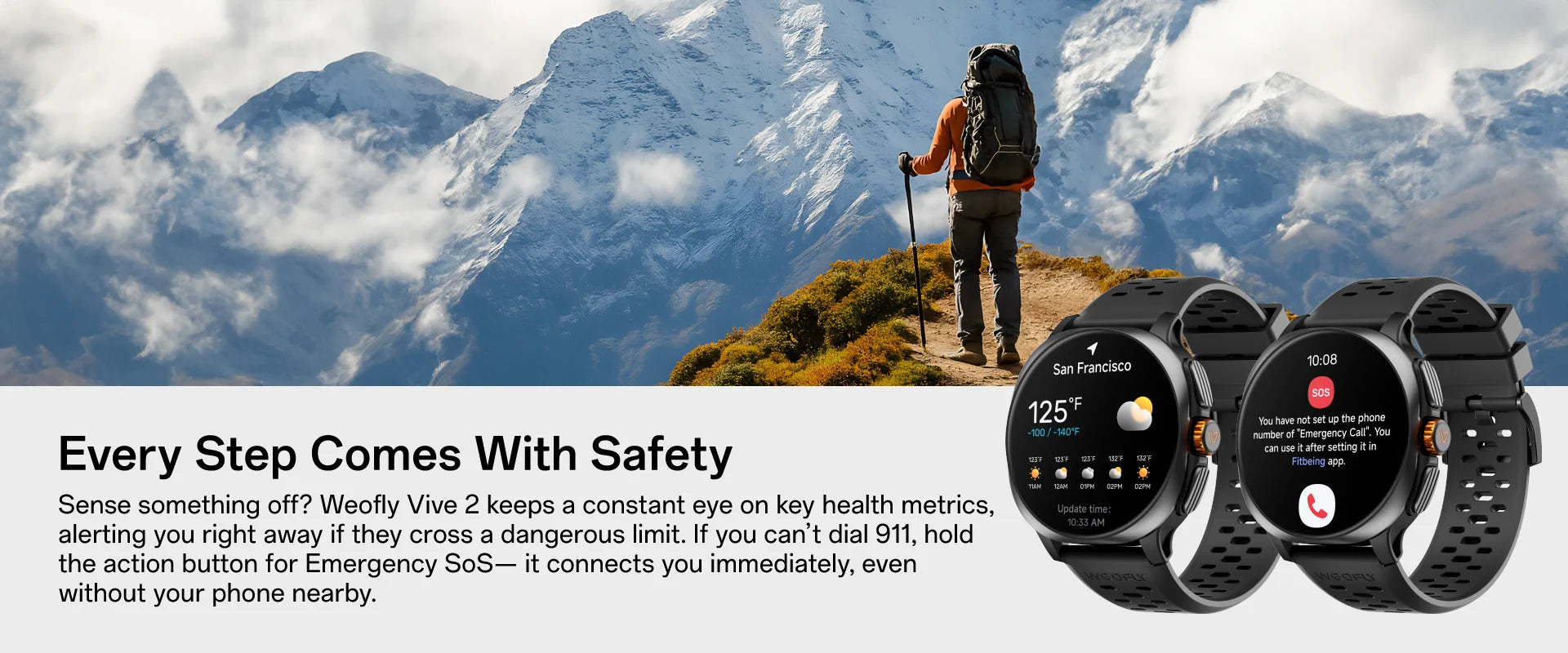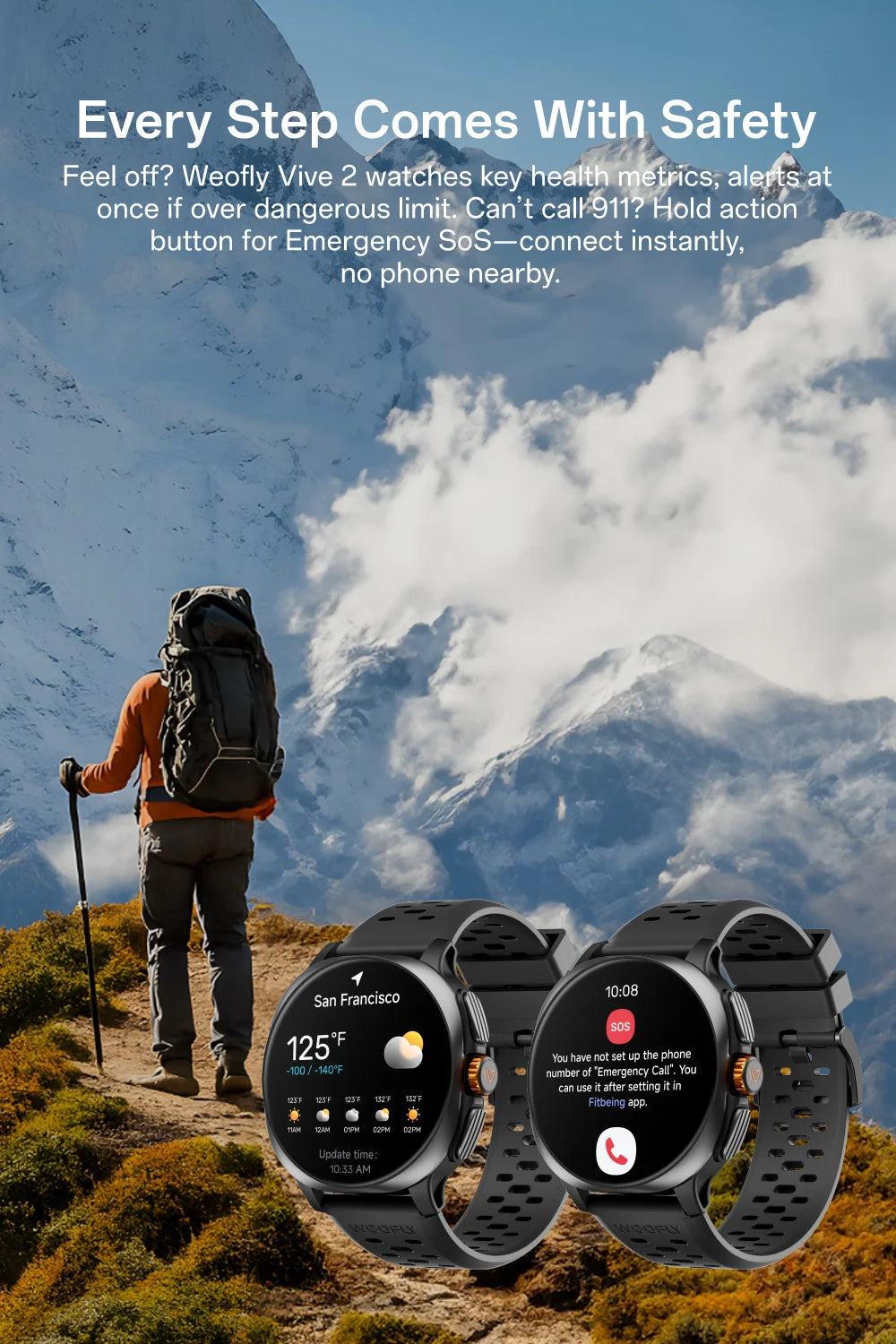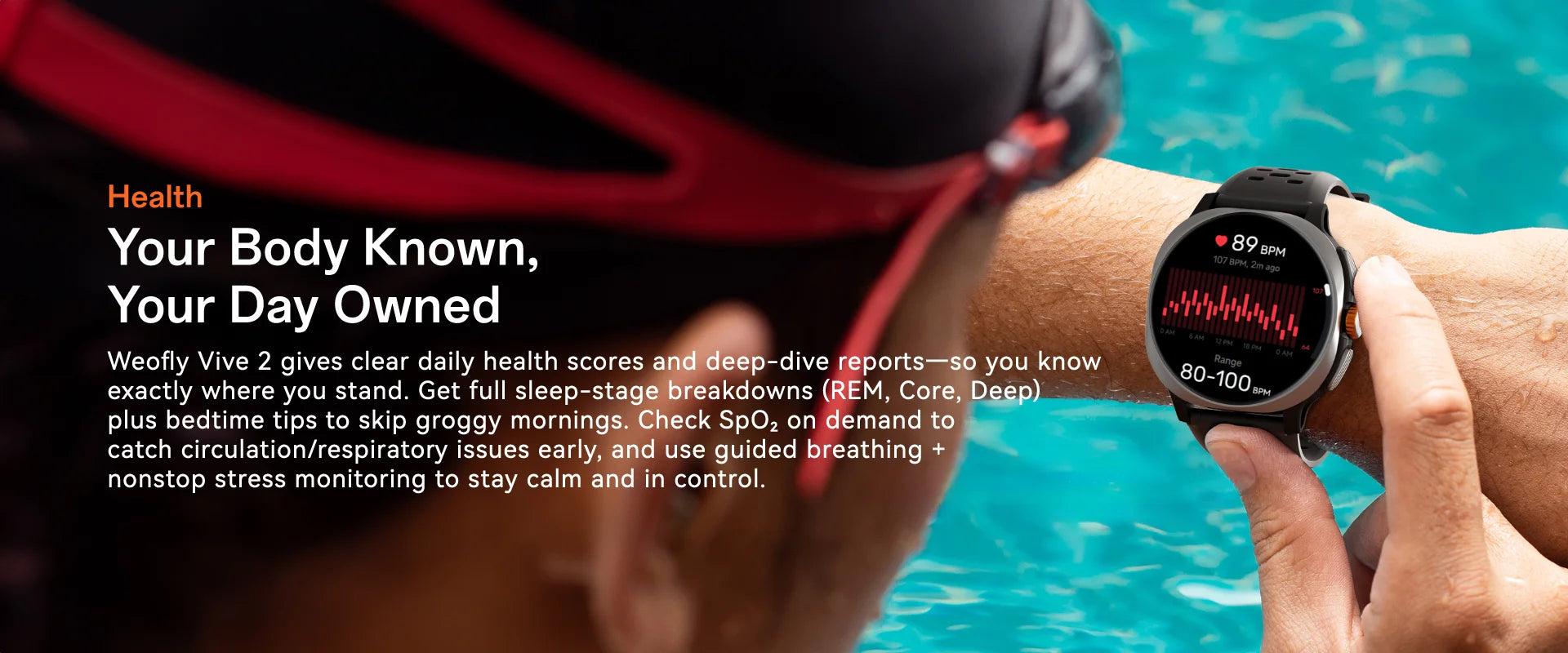 For various activities (hiking, cycling, running included), Weofly Vive 2 is the best stylish sports smartwatch around. To unlock more ways to step up your sports game, check out the Weofly Fitpro App.