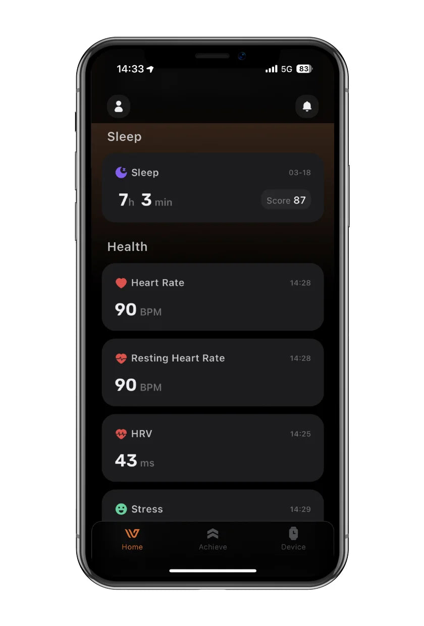 Auto-monitor sleep, heart rate & stress—get real-time health insights whenever you need.