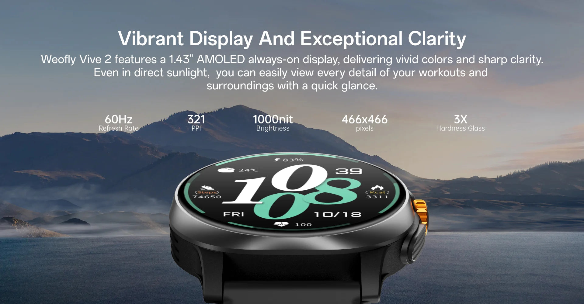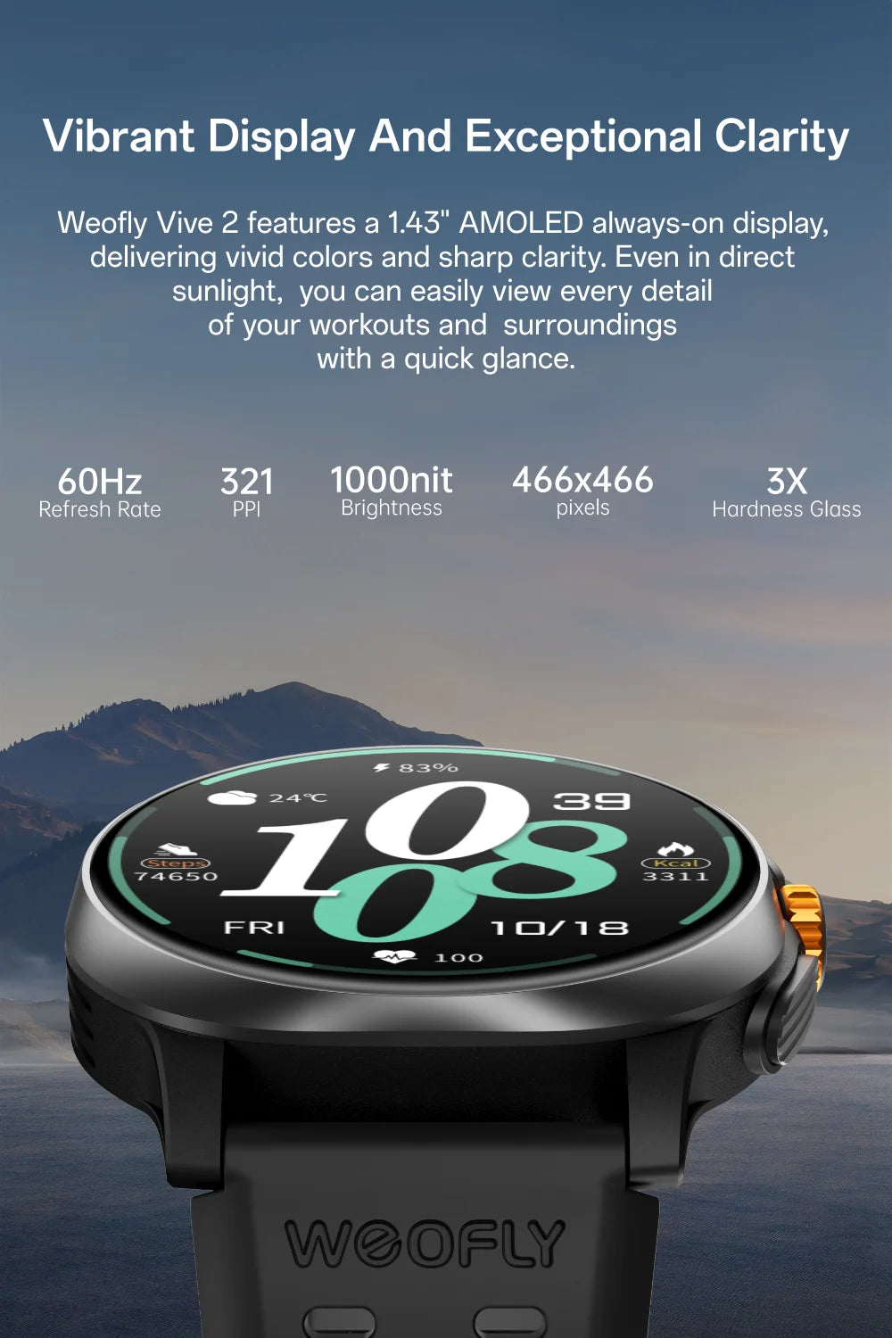 - 2 Straps Included: The Weofly Vive 2 comes with two straps – a breathable and comfortable liquid silicone strap designed for sports, and a woven nylon strap for casual and relaxing use, all aimed at providing a better user experience.