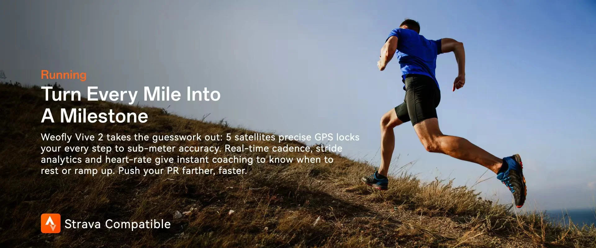 60+ pro sports modes + 5 smart recognition features—Weofly Vive 2 is your one-of-a-kind ultimate smart workout buddy.